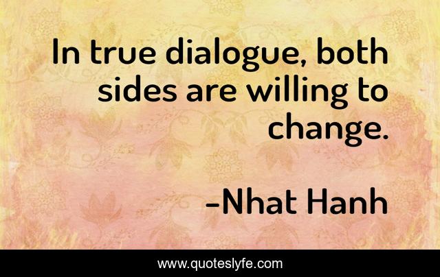 This page presents the quote "In true dialogue, both sides are willing to change.". Author of this quote is Nhat Hanh. This quote is about dialogue, true, both sides,.