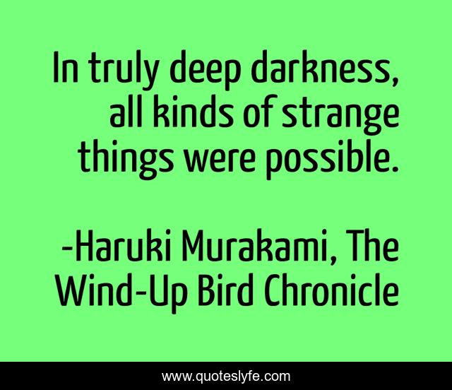 This page presents the quote "In truly deep darkness, all kinds of strange things were possible.". Author of this quote is Haruki Murakami, The Wind-Up Bird Chronicle. .