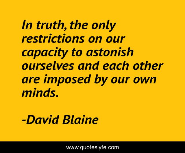"David Blaine Quotes." Quoteslyfe.com, 2025. Fri. 05 Dec. 2025. <https://www.quoteslyfe.com/quote/In-truth-the-only-restrictions-on-our-310288>.