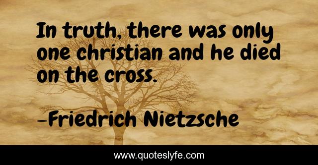 This page presents the quote "In truth, there was only one christian and he died on the cross.". Author of this quote is Friedrich Nietzsche. This quote is about religion, christian-behavior, christianity,.