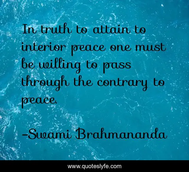 This page presents the quote "In truth to attain to interior peace one must be willing to pass through the contrary to peace.". Author of this quote is Swami Brahmananda. This quote is about peace, mind,.
