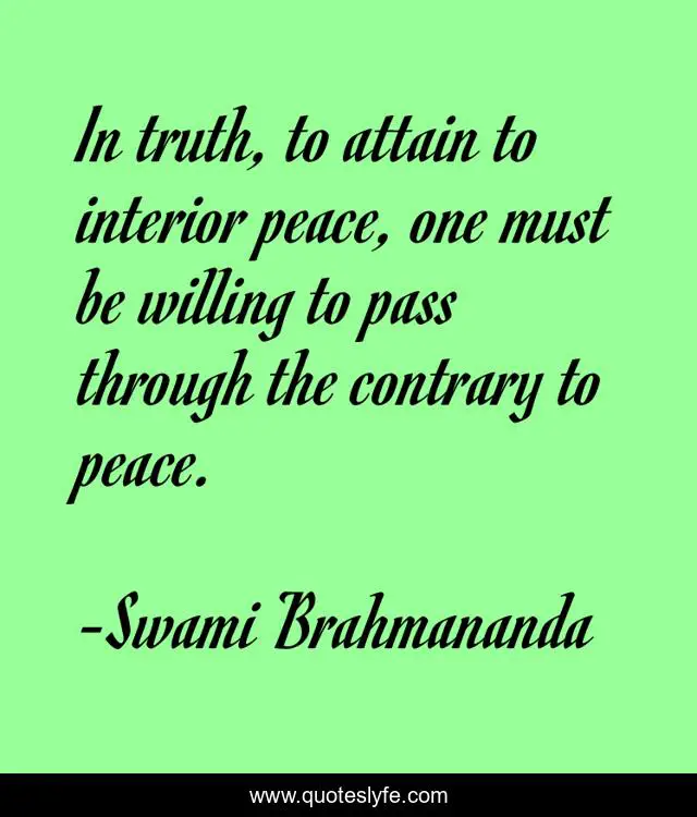 This page presents the quote "In truth, to attain to interior peace, one must be willing to pass through the contrary to peace.". Author of this quote is Swami Brahmananda. .