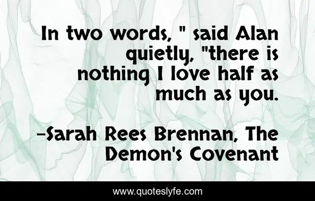 This page presents the quote "In two words, " said Alan quietly, "there is nothing I love half as much as you.". Author of this quote is Sarah Rees Brennan, The Demon's Covenant. This quote is about the-demon-s-covenant, alan-ryves, love, family, affection,.
