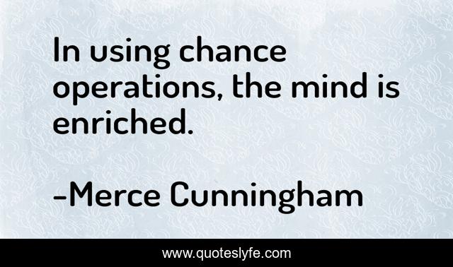 This page presents the quote "In using chance operations, the mind is enriched.". Author of this quote is Merce Cunningham. This quote is about operations, using, mind,.