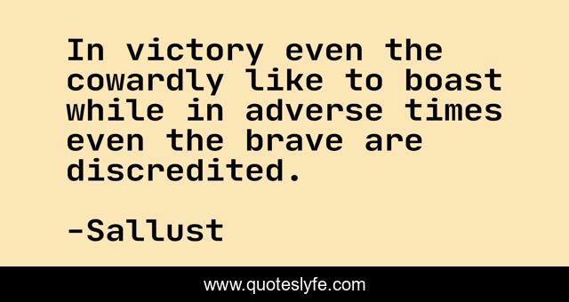 This page presents the quote "In victory even the cowardly like to boast while in adverse times even the brave are discredited.". Author of this quote is Sallust. .