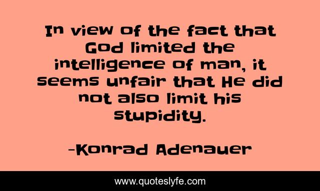 This page presents the quote "In view of the fact that God limited the intelligence of man, it seems unfair that He did not also limit his stupidity.". Author of this quote is Konrad Adenauer. This quote is about god, stupidity, man,.