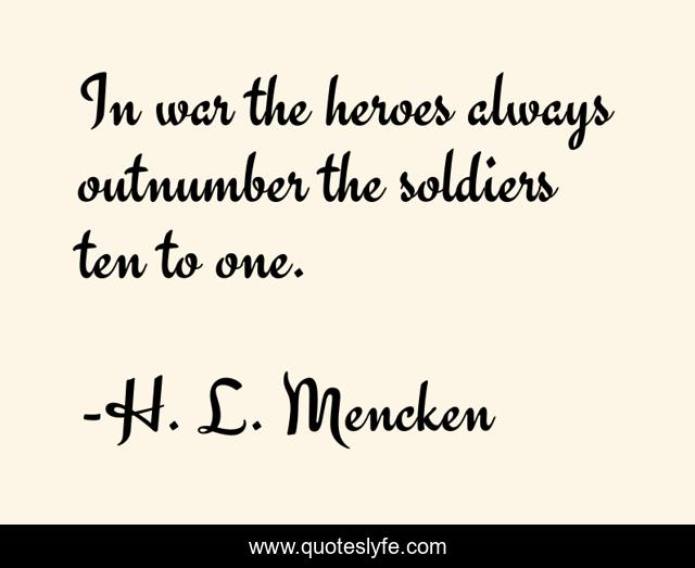 "H. L. Mencken Quotes." Quoteslyfe.com, 2025. Sun. 07 Dec. 2025. <https://www.quoteslyfe.com/quote/In-war-the-heroes-always-outnumber-the-285611>.