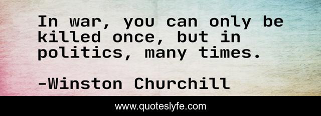 This page presents the quote "In war, you can only be killed once, but in politics, many times.". Author of this quote is Winston Churchill. This quote is about war, once,.