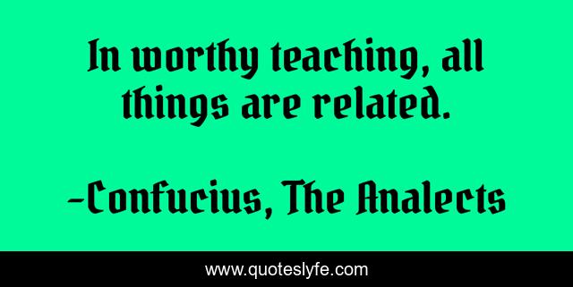 This page presents the quote "In worthy teaching, all things are related.". Author of this quote is Confucius, The Analects. .