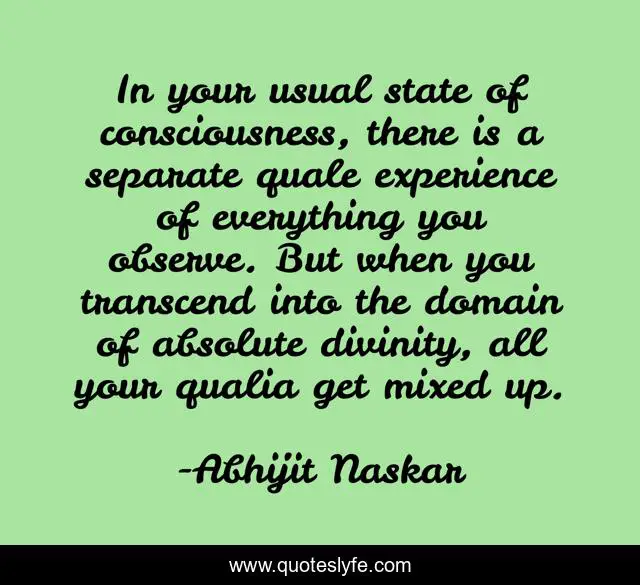 In your usual state of consciousness, there is a separate quale experience of everything you observe. But when you transcend into the domain of absolute divinity, all your qualia get mixed up.