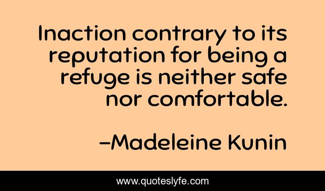 This page presents the quote "Inaction contrary to its reputation for being a refuge is neither safe nor comfortable.". Author of this quote is Madeleine Kunin. This quote is about failures, mistakes,.
