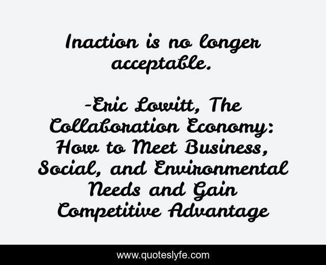 "Eric Lowitt, The Collaboration Economy: How to Meet Business, Social, and Environmental Needs and Gain Competitive Advantage Quotes." Quoteslyfe.com, 2025. Sat. 06 Dec. 2025. <https://www.quoteslyfe.com/quote/Inaction-is-no-longer-acceptable-128989>.