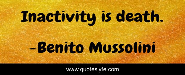 This page presents the quote "Inactivity is death.". Author of this quote is Benito Mussolini. .
