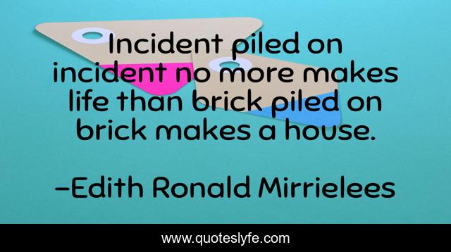 This page presents the quote "Incident piled on incident no more makes life than brick piled on brick makes a house.". Author of this quote is Edith Ronald Mirrielees. .