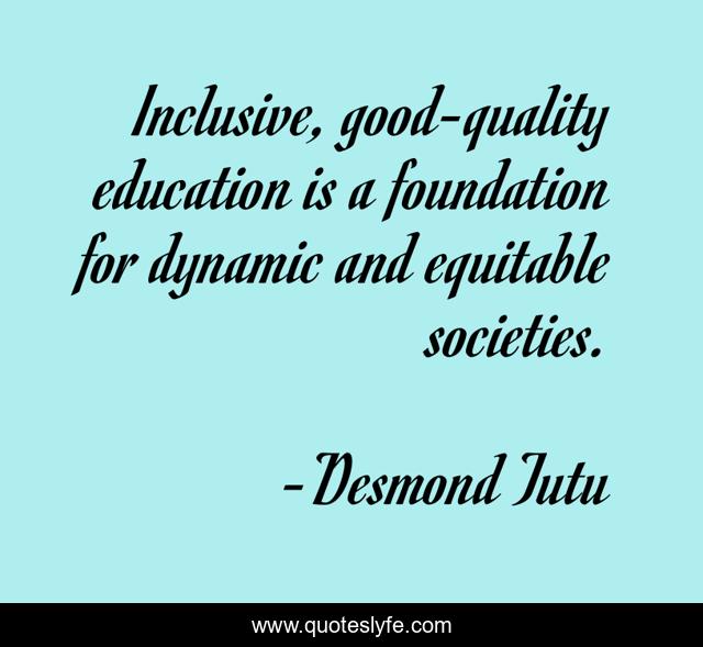 This page presents the quote "Inclusive, good-quality education is a foundation for dynamic and equitable societies.". Author of this quote is Desmond Tutu. This quote is about foundation, inclusive,.