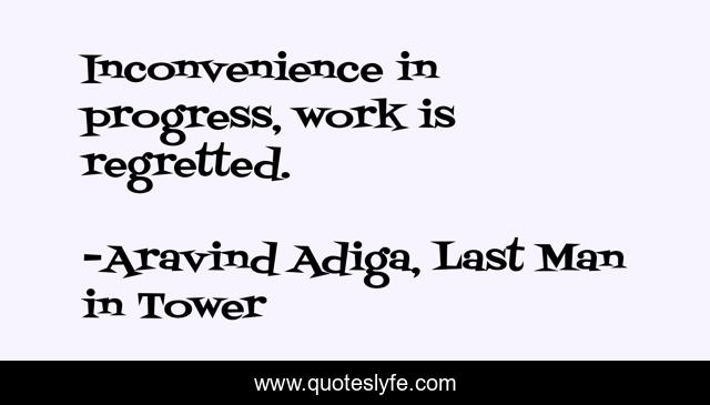 "Aravind Adiga, Last Man in Tower Quotes." Quoteslyfe.com, 2025. Fri. 05 Dec. 2025. <https://www.quoteslyfe.com/quote/Inconvenience-in-progress-work-is-regretted-41295>.