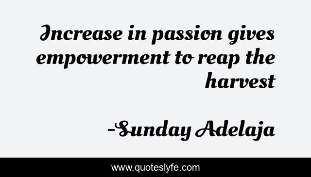 This page presents the quote "Increase in passion gives empowerment to reap the harvest". Author of this quote is Sunday Adelaja. This quote is about increase, harvest, passion, reap,.