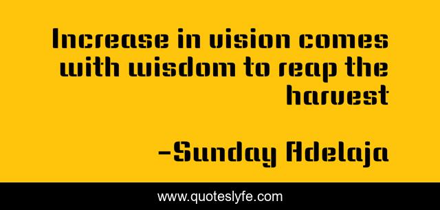 This page presents the quote "Increase in vision comes with wisdom to reap the harvest". Author of this quote is Sunday Adelaja. This quote is about increase, reap, vision, wisdom,.