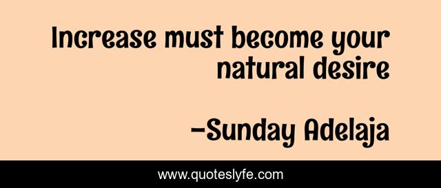 This page presents the quote "Increase must become your natural desire". Author of this quote is Sunday Adelaja. This quote is about desire, become, increase, natural,.
