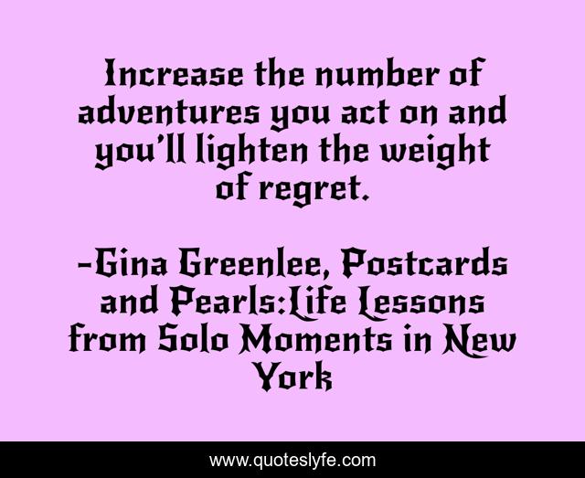 "Gina Greenlee, Postcards and Pearls:Life Lessons from Solo Moments in New York Quotes." Quoteslyfe.com, 2025. Fri. 05 Dec. 2025. <https://www.quoteslyfe.com/quote/Increase-the-number-of-adventures-you-act-249903>.
