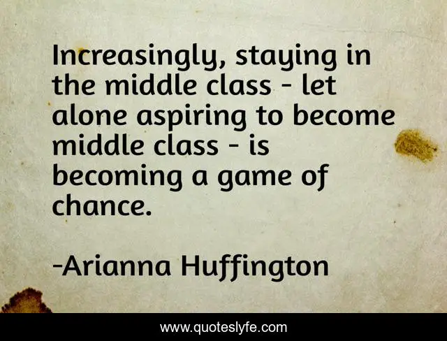 This page presents the quote "Increasingly, staying in the middle class - let alone aspiring to become middle class - is becoming a game of chance.". Author of this quote is Arianna Huffington. This quote is about alone, game, class,.