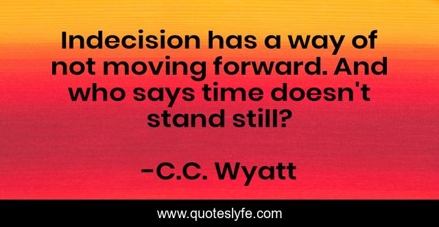 This page presents the quote "Indecision has a way of not moving forward. And who says time doesn't stand still?". Author of this quote is C.C. Wyatt. .