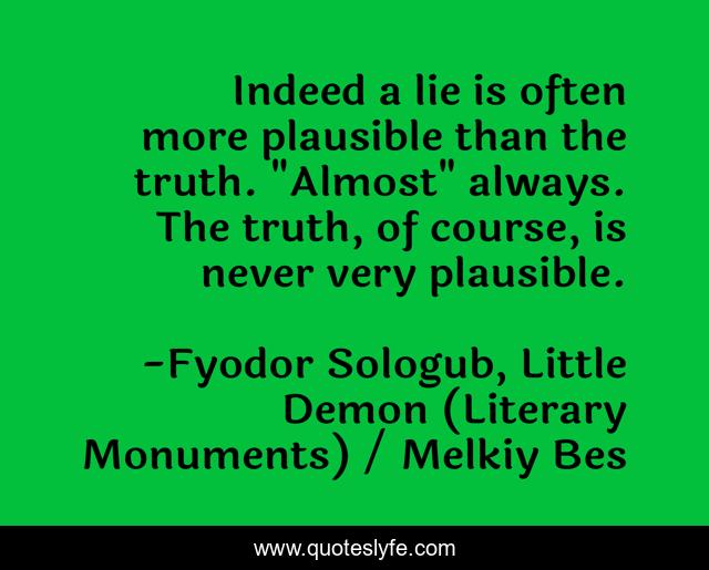 "Fyodor Sologub, Little Demon (Literary Monuments) / Melkiy Bes Quotes." Quoteslyfe.com, 2025. Fri. 05 Dec. 2025. <https://www.quoteslyfe.com/quote/Indeed-a-lie-is-often-more-plausible-10368>.
