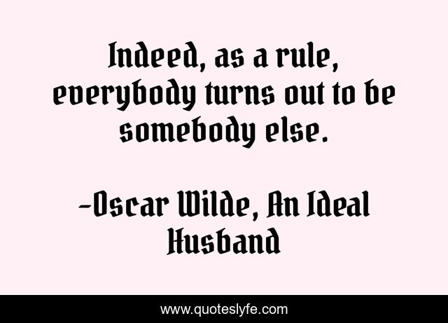 This page presents the quote "Indeed, as a rule, everybody turns out to be somebody else.". Author of this quote is Oscar Wilde, An Ideal Husband. This quote is about oscar-wilde, an-ideal-husband, humanity, truth,.