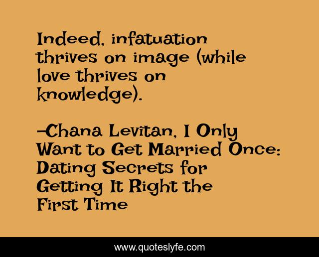 "Chana Levitan, I Only Want to Get Married Once: Dating Secrets for Getting It Right the First Time Quotes." Quoteslyfe.com, 2025. Sat. 06 Dec. 2025. <https://www.quoteslyfe.com/quote/Indeed-infatuation-thrives-on-image-while-love-203994>.