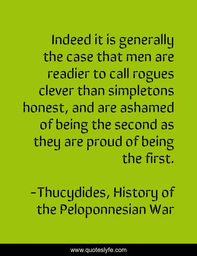 This page presents the quote "Indeed it is generally the case that men are readier to call rogues clever than simpletons honest, and are ashamed of being the second as they are proud of being the first.". Author of this quote is Thucydides, History of the Peloponnesian War. This quote is about human-nature, honesty, history,.