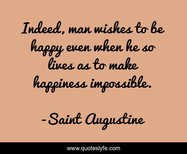 This page presents the quote "Indeed, man wishes to be happy even when he so lives as to make happiness impossible.". Author of this quote is Saint Augustine. This quote is about be happy, happy, man,.