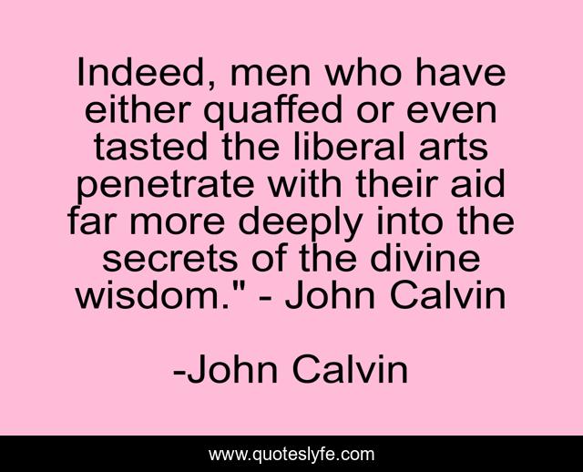 This page presents the quote "Indeed, men who have either quaffed or even tasted the liberal arts penetrate with their aid far more deeply into the secrets of the divine wisdom." - John Calvin". Author of this quote is John Calvin. .