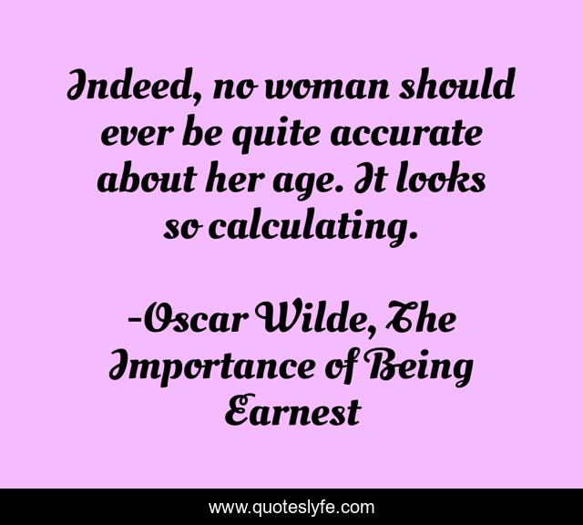 This page presents the quote "Indeed, no woman should ever be quite accurate about her age. It looks so calculating.". Author of this quote is Oscar Wilde, The Importance of Being Earnest. This quote is about age, act-iii, women,.