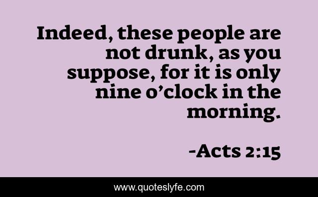 This page presents the quote "Indeed, these people are not drunk, as you suppose, for it is only nine o’clock in the morning.". Author of this quote is Acts 2:15. This quote is about new-testament, drinking, bible, alcohol,.