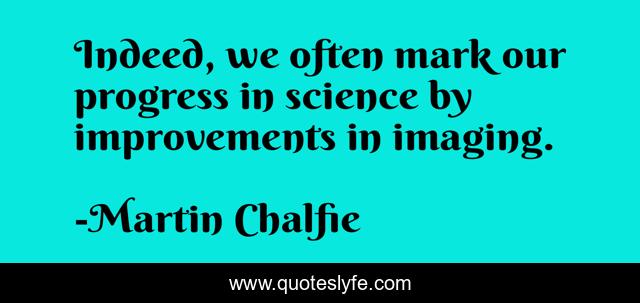 This page presents the quote "Indeed, we often mark our progress in science by improvements in imaging.". Author of this quote is Martin Chalfie. This quote is about progress, imaging, mark,.