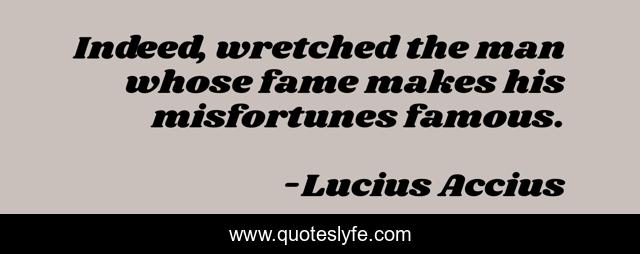 This page presents the quote "Indeed, wretched the man whose fame makes his misfortunes famous.". Author of this quote is Lucius Accius. This quote is about wretched, fame, man,.