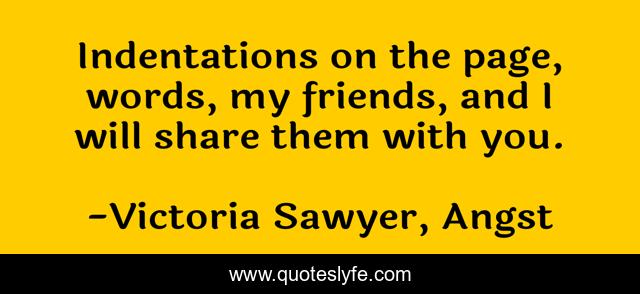 "Victoria Sawyer, Angst Quotes." Quoteslyfe.com, 2025. Fri. 05 Dec. 2025. <https://www.quoteslyfe.com/quote/Indentations-on-the-page-words-my-friends-215090>.