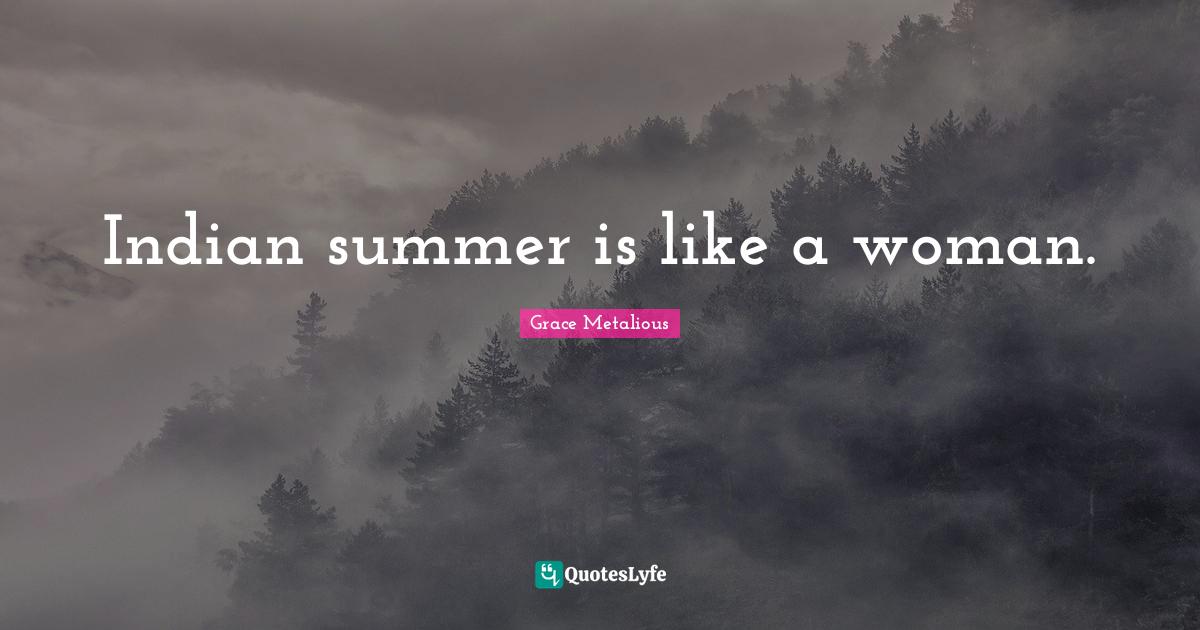 This page presents the quote "Indian summer is like a woman.". Author of this quote is Grace Metalious. This quote is about indian, indian summer, summer,.