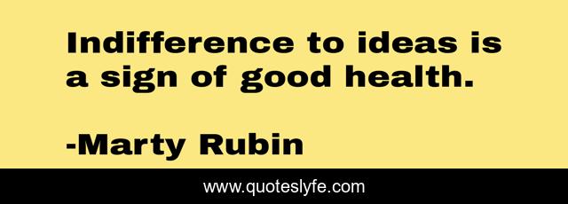 This page presents the quote "Indifference to ideas is a sign of good health.". Author of this quote is Marty Rubin. This quote is about good-health, indifference, ideas,.