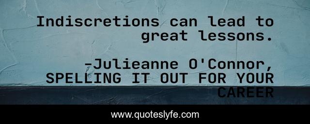 "Julieanne O'Connor, SPELLING IT OUT FOR YOUR CAREER Quotes." Quoteslyfe.com, 2025. Tue. 09 Dec. 2025. <https://www.quoteslyfe.com/quote/Indiscretions-can-lead-to-great-lessons-49730>.