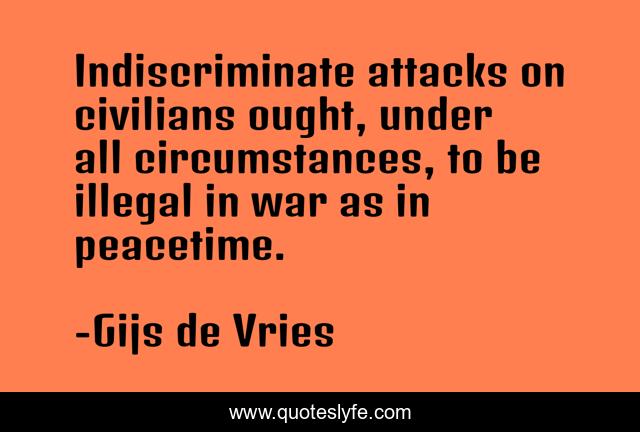 This page presents the quote "Indiscriminate attacks on civilians ought, under all circumstances, to be illegal in war as in peacetime.". Author of this quote is Gijs de Vries. This quote is about illegal, circumstances,.