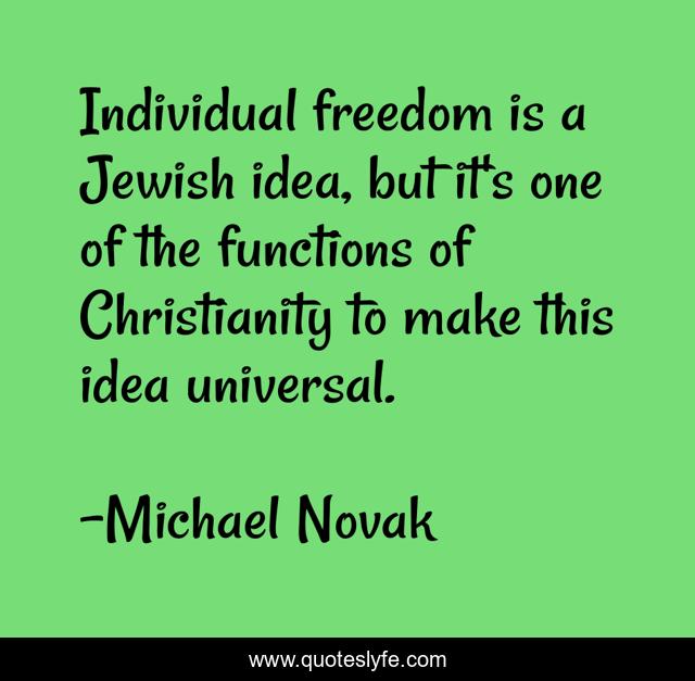 This page presents the quote "Individual freedom is a Jewish idea, but it's one of the functions of Christianity to make this idea universal.". Author of this quote is Michael Novak. This quote is about individual, idea,.