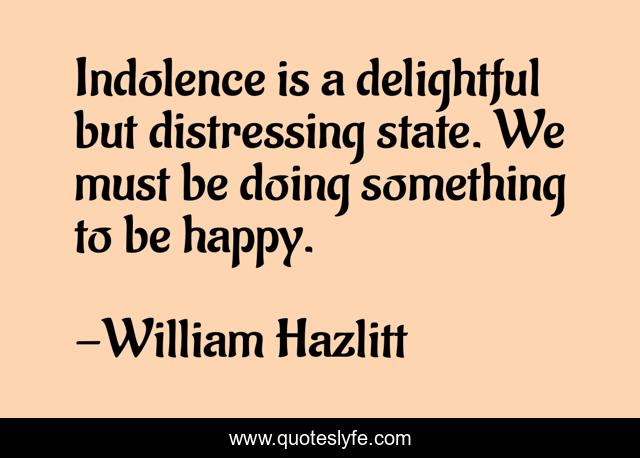 This page presents the quote "Indolence is a delightful but distressing state. We must be doing something to be happy.". Author of this quote is William Hazlitt. .