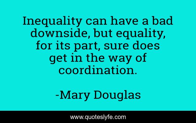 This page presents the quote "Inequality can have a bad downside, but equality, for its part, sure does get in the way of coordination.". Author of this quote is Mary Douglas. This quote is about bad, inequality, way,.