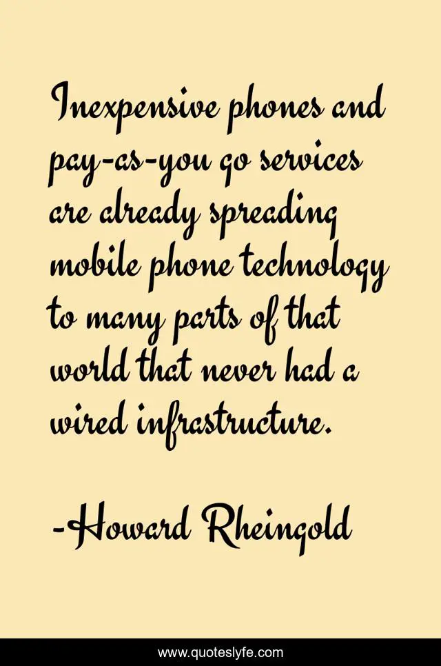 "Howard Rheingold Quotes." Quoteslyfe.com, 2025. Mon. 08 Dec. 2025. <https://www.quoteslyfe.com/quote/Inexpensive-phones-and-pay-as-you-go-320006>.