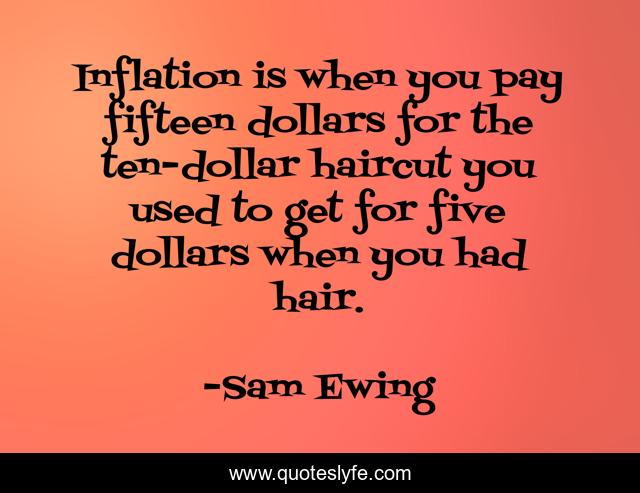 This page presents the quote "Inflation is when you pay fifteen dollars for the ten-dollar haircut you used to get for five dollars when you had hair.". Author of this quote is Sam Ewing. This quote is about inflation, humor, economics,.