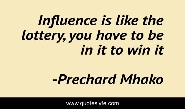 "Prechard Mhako Quotes." Quoteslyfe.com, 2025. Fri. 05 Dec. 2025. <https://www.quoteslyfe.com/quote/Influence-is-like-the-lottery-you-have-236355>.