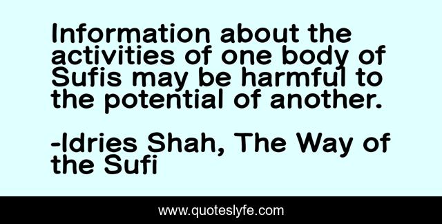This page presents the quote "Information about the activities of one body of Sufis may be harmful to the potential of another.". Author of this quote is Idries Shah, The Way of the Sufi. This quote is about sufism, sufis, wisdom,.