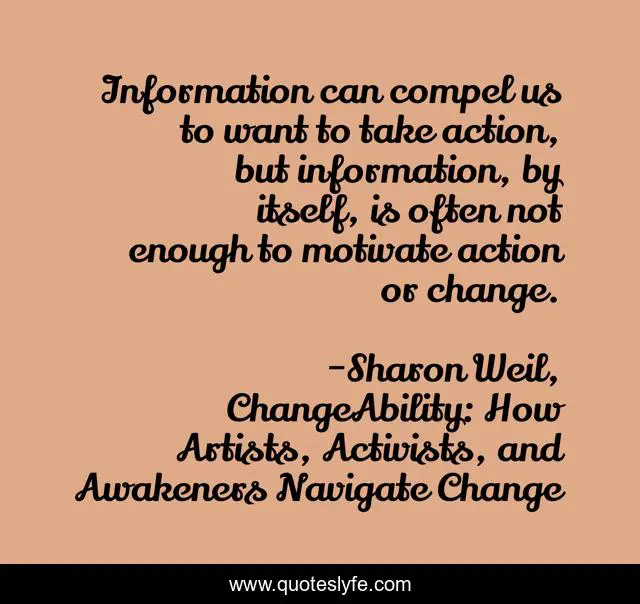 "Sharon Weil, ChangeAbility: How Artists, Activists, and Awakeners Navigate Change Quotes." Quoteslyfe.com, 2025. Fri. 05 Dec. 2025. <https://www.quoteslyfe.com/quote/Information-can-compel-us-to-want-to-47379>.
