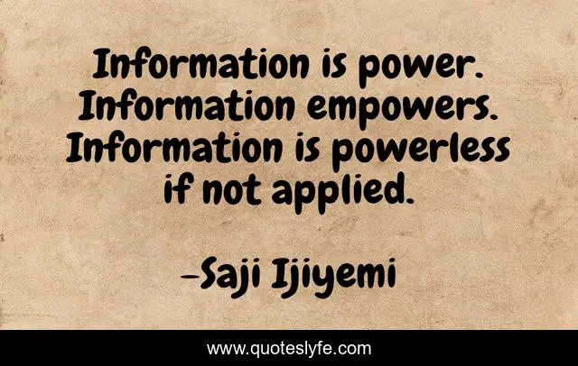 "Saji Ijiyemi Quotes." Quoteslyfe.com, 2025. Sat. 06 Dec. 2025. <https://www.quoteslyfe.com/quote/Information-is-power-Information-empowers-Information-is-205120>.